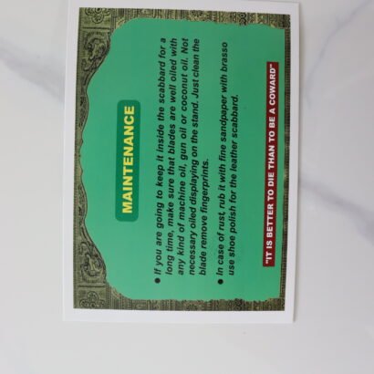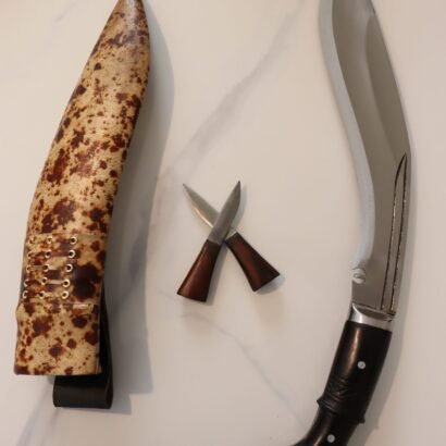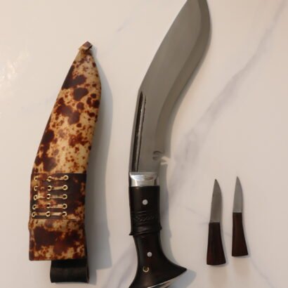 This 10-inch permanent etching Nepali Khukuri is a handcrafted blade inspired by the traditional knives used across Nepal. Carefully forged by experienced craftsmen, the blade is made from durable steel and finished with decorative permanent etching that adds character and cultural detail to the knife.