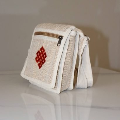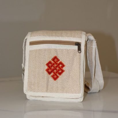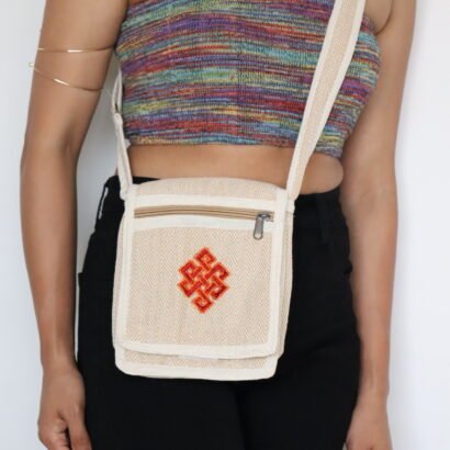 Handcrafted from 100% pure Himalayan hemp, this bohemian crossbody bag is accented with a striking red endless knot embroidery, symbolising continuity and balance. Naturally eco-friendly and sustainable, it is light to wear yet made for everyday strength. A secure zipper closure keeps essentials safe, while the adjustable strap allows relaxed waist or crossbody styling. Designed for all genders, it’s ideal for daily use, travel, and mindful living.