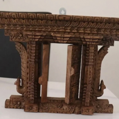 Crafted from natural yellow wood (Haldhu Kath), this piece combines precision and craftsmanship. The outer shape and size are machine-cut for accuracy, while all intricate carvings are done entirely by hand, showcasing skilled traditional artistry. The natural, unpainted finish highlights the beautiful wood grain and preserves its authentic character.